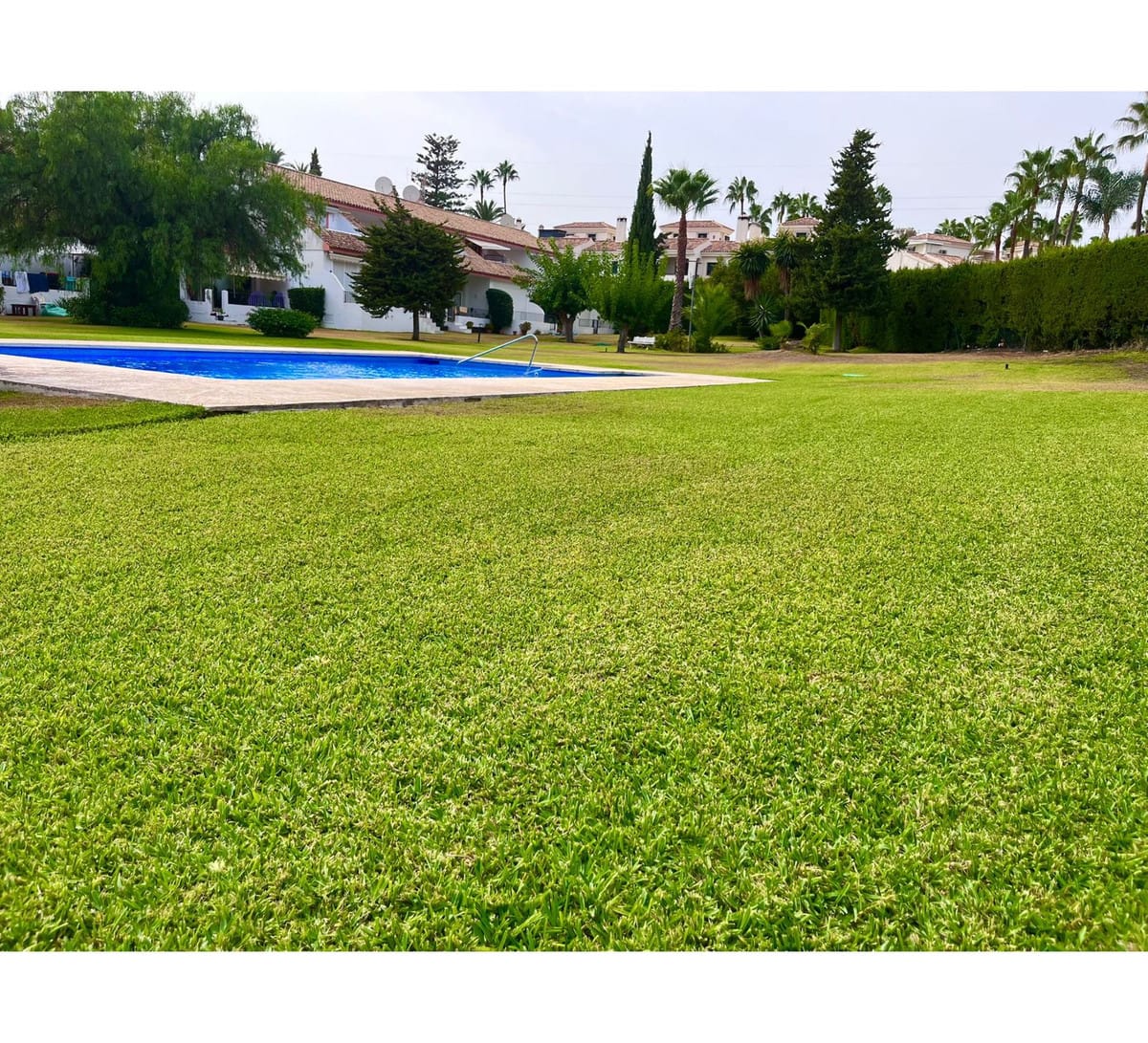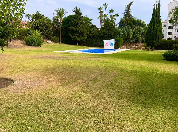 Residents enjoy access to a large green area and a communal swimming pool, perfect for relaxation and leisure.