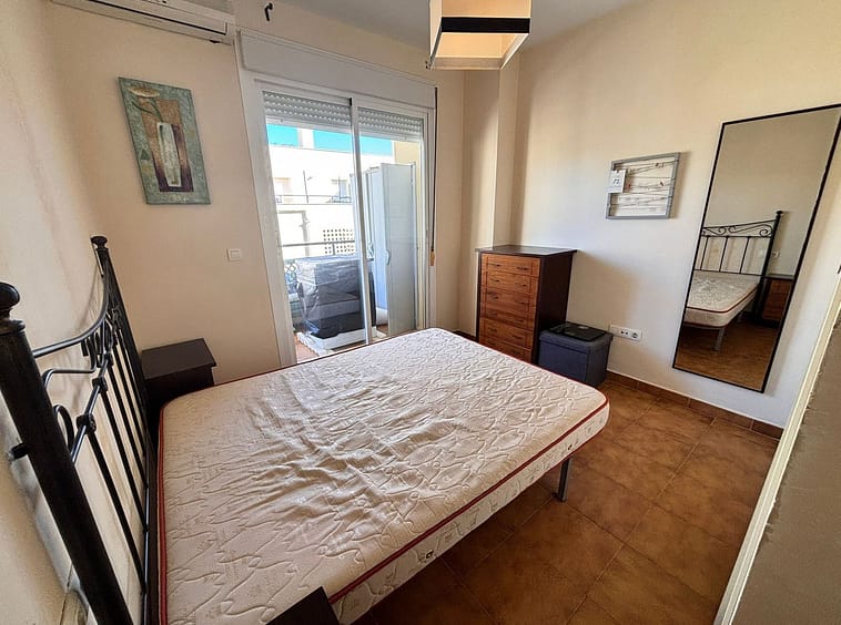 The apartment offers a spacious and bright bedroom and a full bathroom with a shower. Its layout is comfortable and functional, making the most of every square meter.