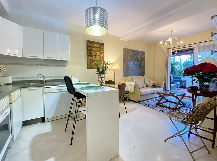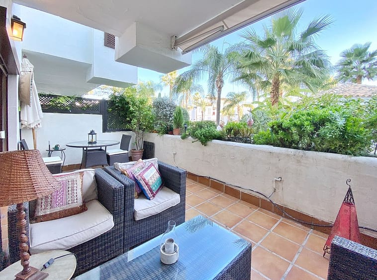 Beautiful ground floor apartment with one bedroom, a private terrace, and lovely views of the peaceful landscaped grounds of the complex.