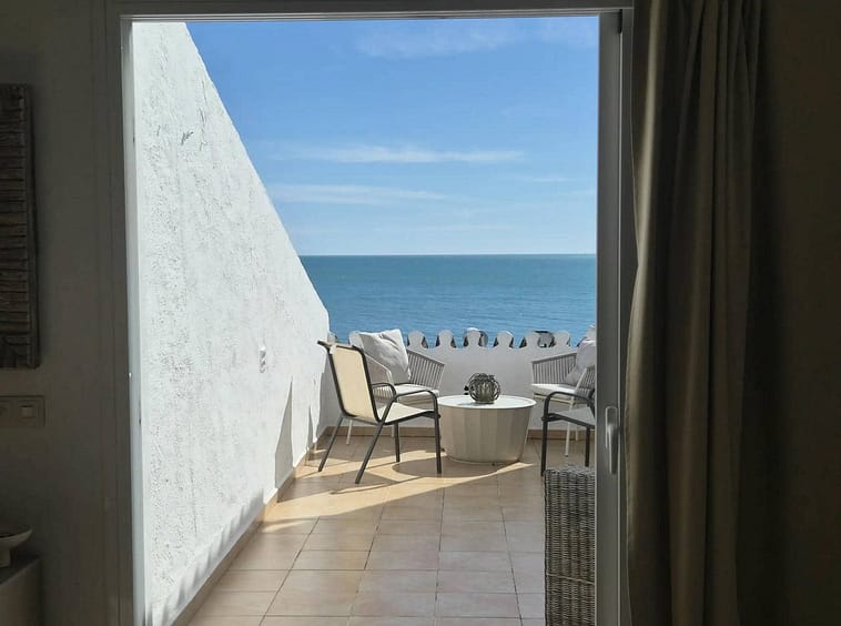 The apartment boasts a beautiful and spacious terrace with direct sea views and panoramic outlooks towards Estepona. This wonderful outdoor space is perfect for dining, relaxing, and enjoying the peaceful surroundings.