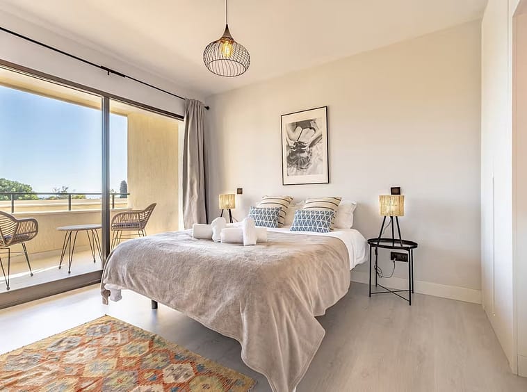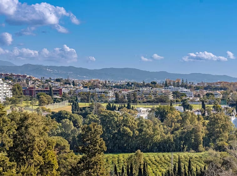 The beach can be reached in approximately 7 minutes via Guadalmina Baja, with shops, restaurants, and golf courses nearby.