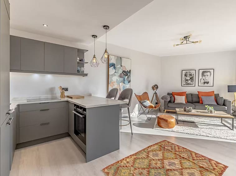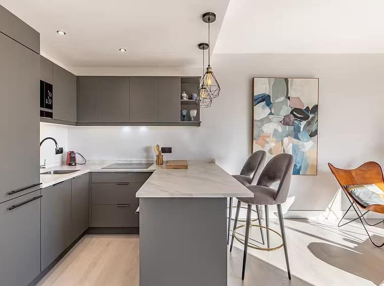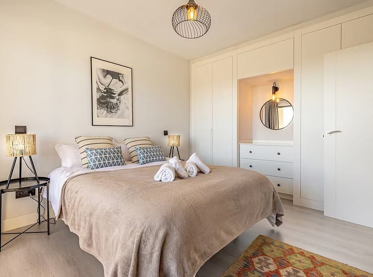 The bright living and dining area opens directly onto the terrace, offering pleasant views of La Concha mountain and the sea. The kitchen is modern, functional, and well integrated. The bedroom is spacious and peaceful with built-in wardrobes, while the bathroom is complete and well laid out.