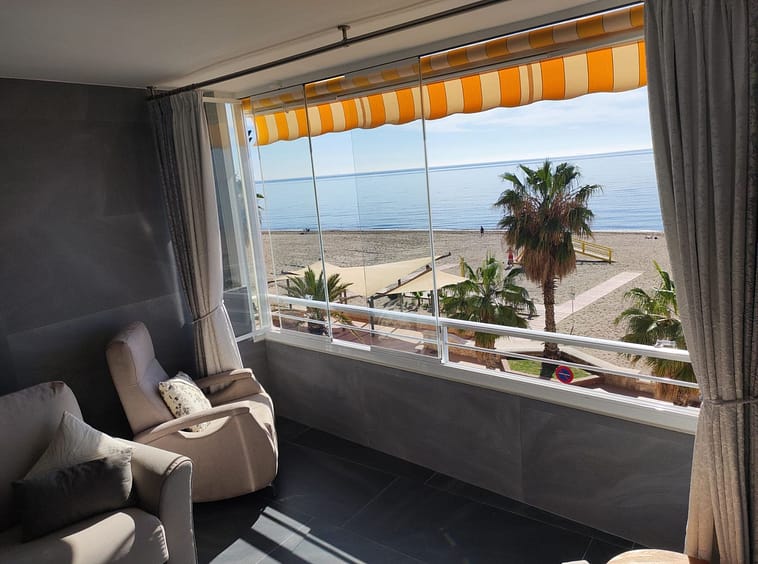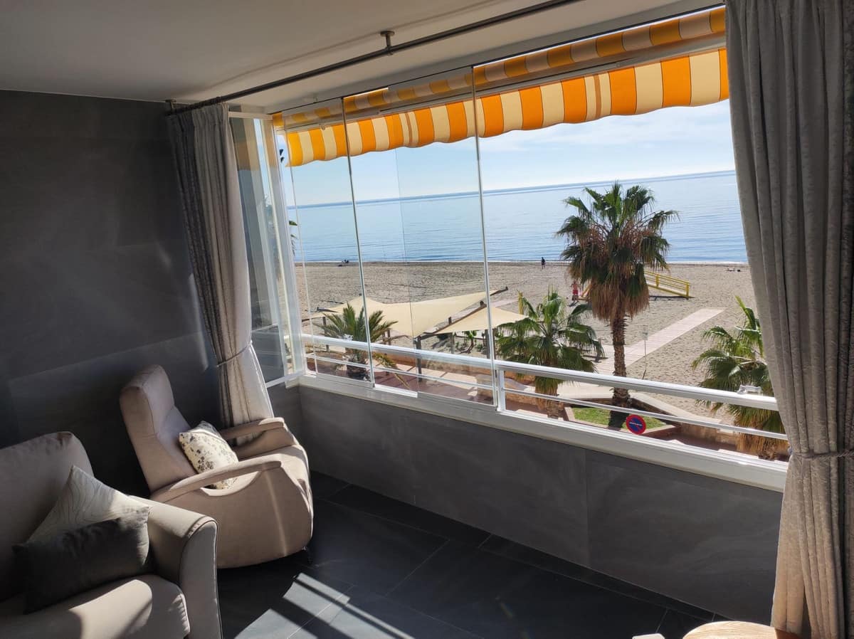 Discover your seaside oasis in this spectacular beachfront apartment in Carvajal, Fuengirola! This charming apartment has been recently renovated and is ready for you to enjoy. With 69 m² built and 58 m² of usable space, it offers a spacious living-dining room with a partially open kitchen, perfect for sharing unforgettable moments. From its terrace and balcony, you can revel in breathtaking sea views while enjoying the refreshing sea breeze.