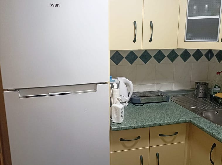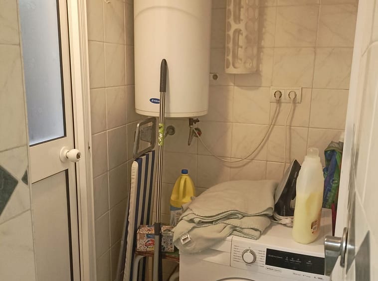 The bright living and dining room opens seamlessly onto the outdoors, creating an ideal atmosphere for relaxing or entertaining. The separate, fully equipped kitchen includes a convenient laundry area and a small additional terrace. The bedroom offers exceptional comfort with its built-in wardrobe and a window that lets in plenty of natural light. Shared parking is also available.