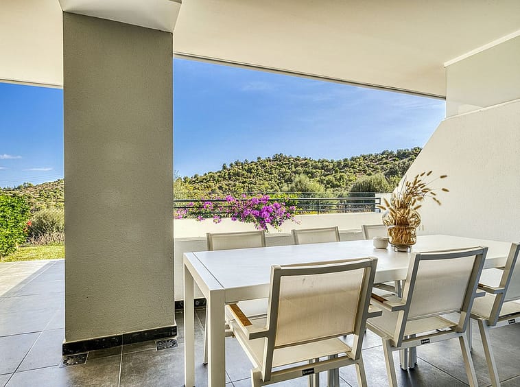 Wake up to stunning sea and mountain views, step onto your private terrace with garden, and enjoy the Mediterranean breeze all year round. Stylishly furnished and fully equipped, this apartment is move-in ready, featuring a modern kitchen with Bosch appliances, designed for both comfort and functionality.
