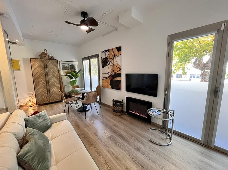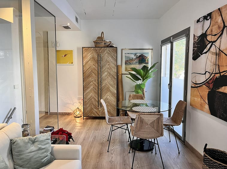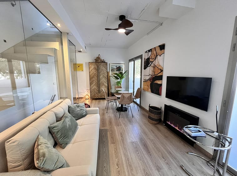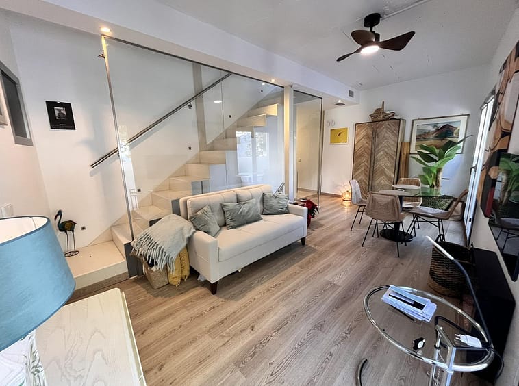 Fantastic duplex apartment in Marbella's Old Town, completely renovated. The only flat in the building without neighbours. Ideal for owners with dogs. This very bright apartment has a living-dining room with hot/cold air conditioning and an electric fireplace with LED technology and large windows that provide plenty of light with high ceilings, a fitted and equipped kitchen, and on the second floor there is a bedroom with a full bathroom and a terrace. Walking distance to all amenities that make your daily life more comfortable without the need for a vehicle. A step from Marbella Old Town, where you can stroll through the city's iconic narrow streets, and just 12 minutes from Marbella's best beaches and the promenade. Active short term rental License Great opportunity! Property with no extra costs. It is a candy. Come and visit!