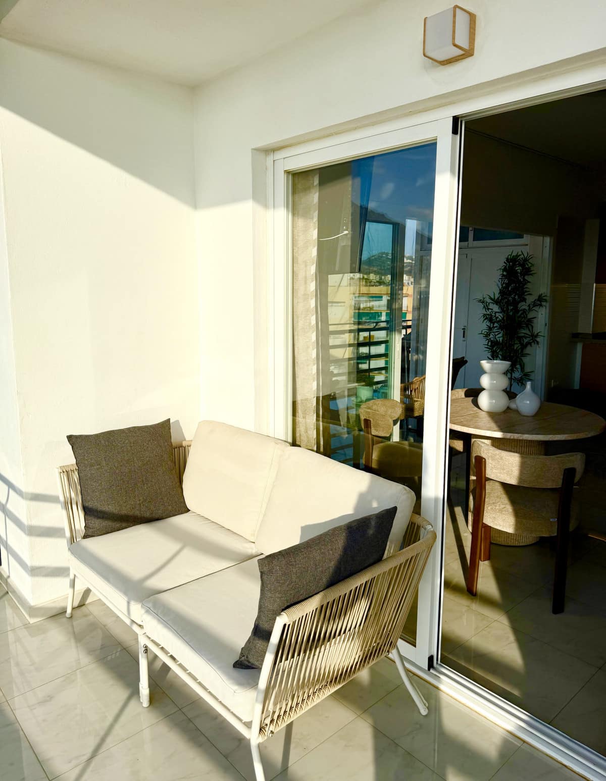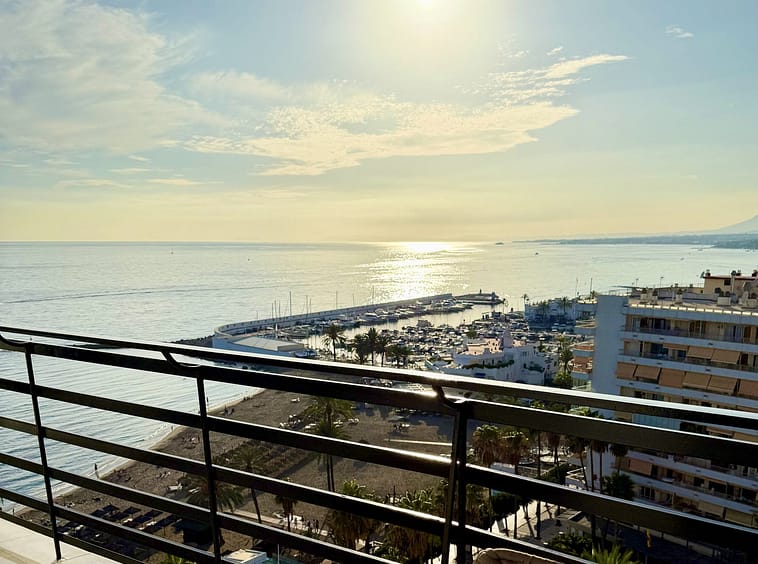 The property has a total area of 72 sqm, consisting of 52 sqm of living space and a generous 20 sqm wrap-around terrace. The terrace offers views of the sea and beach, as well as the mountains and the Old Town. Large panoramic windows provide abundant natural light and an open, airy atmosphere. Enjoy stunning sunsets, and in the evening, the rear side of the terrace reveals Marbella’s sparkling lights against the mountains and the Old Town – truly the best of both worlds.