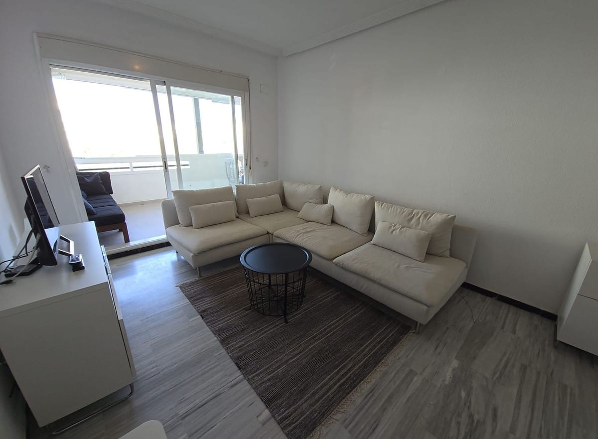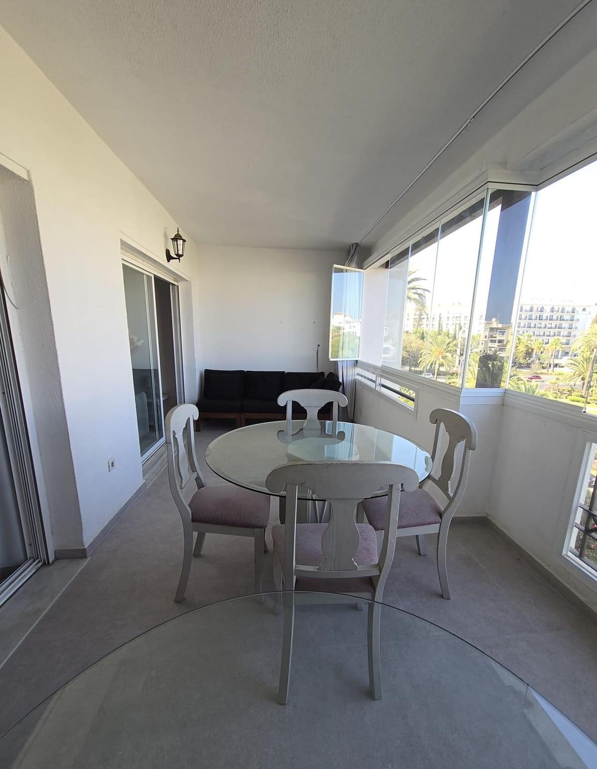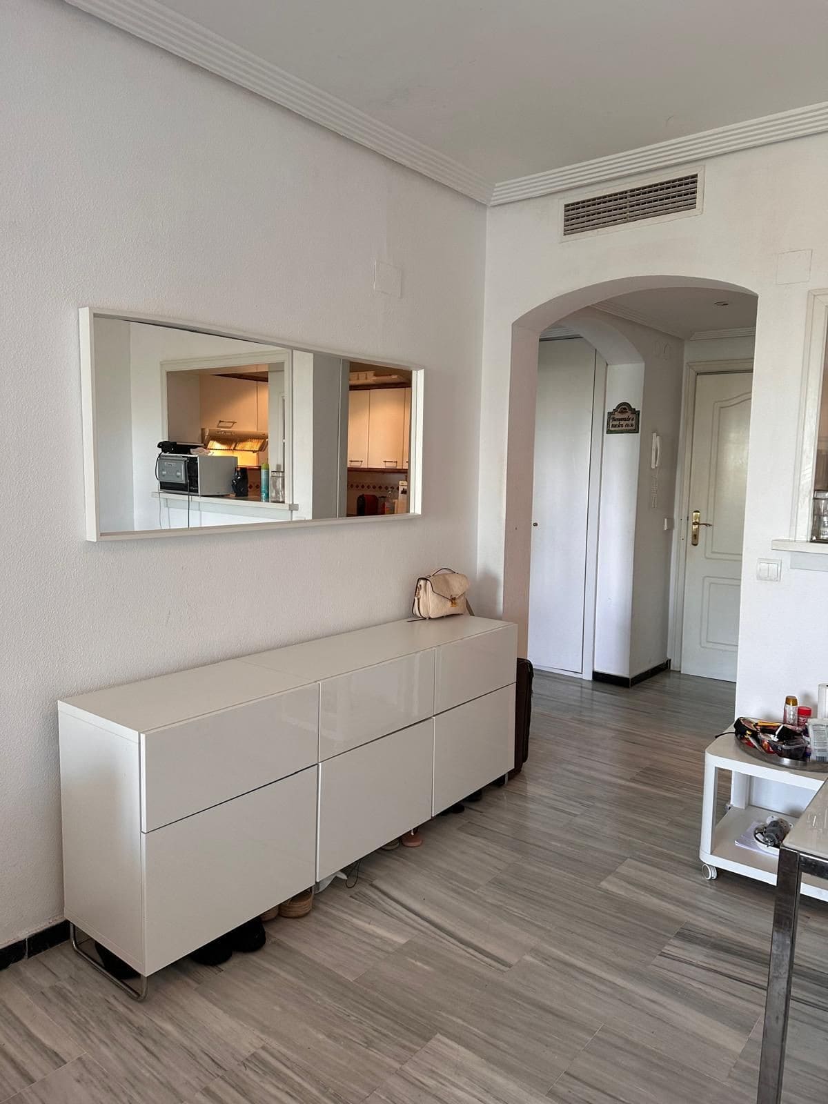 Renovated apartment for sale. One bedroom, brand new bathroom, American kitchen with plenty of storage space, two built-in wardrobes, hot/cold air conditioning and electronic radiators. Smooth paint. Indirect lights adjustable in intensity and perimeter recess to create atmospheres. Very bright. Camouflaged designer sockets. On the terrace, a room for a washing machine and storage has been built. It has a washer-dryer. Electric awning. The apartment has 58 useful square meters and the terrace 30 useful square meters. Brand new hot water heater. Water is not paid for, it is included in the community fee. Possibility of making a second bedroom since the square footage of the house is large. Quiet urbanization designed by the architect Fernando Higueras, with a tropical garden, with two swimming pools, fountains, an artificial river with fish, frogs, ducks.. . IT HAS DIRECT PEDESTRIAN ACCESS TO THE BEACH, without having to cross the road, two showers for when you return from the beach to remove the sand, with direct access to the pool from the beach.