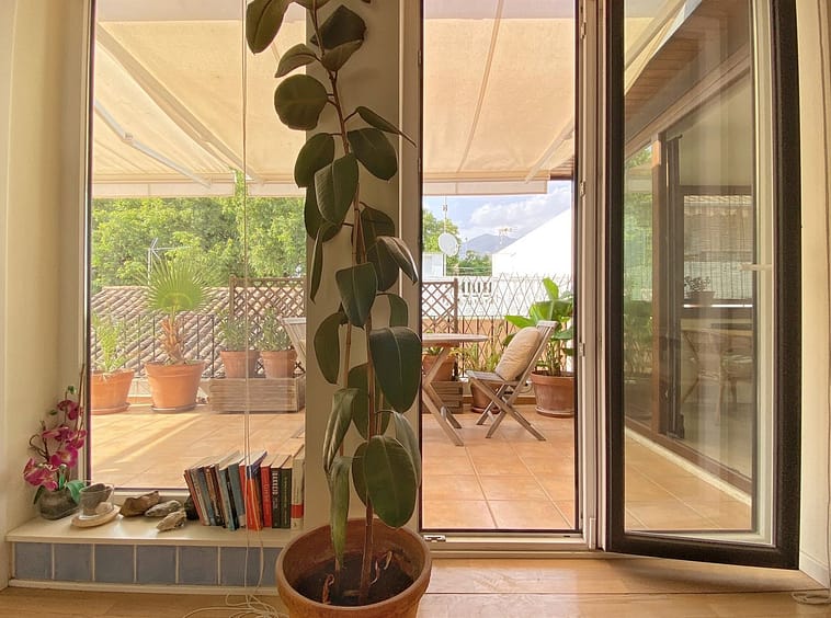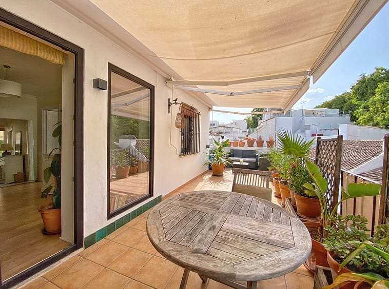 Located on a quiet pedestrian street in Marbella's Old Town, very peaceful and quiet. The apartment has a separate bedroom, a bathroom with a shower and an exterior window, a cozy living room, and a fully equipped kitchen with a dining area, both with direct access to a fantastic outdoor terrace, where there are different areas to relax or sunbathe on the sun lounger, or to sit and eat outside.