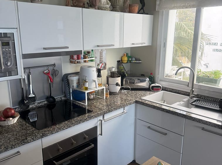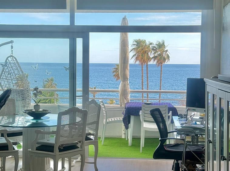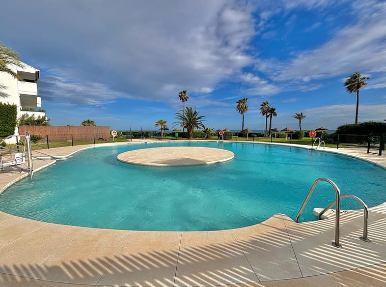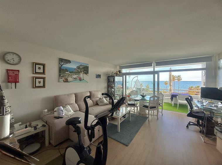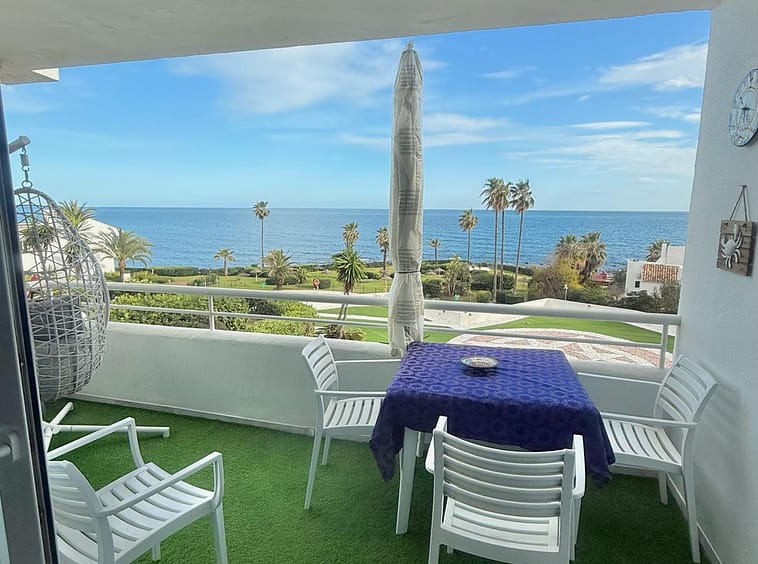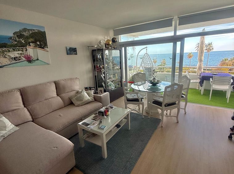 Wake up to breathtaking, uninterrupted views of the sea from this stunning frontline beach apartment. Designed with an open-plan layout, the interior seamlessly connects the living space with the kitchen and terrace, creating a bright and airy ambiance. The terrace offers the perfect setting for outdoor dining while enjoying the spectacular coastal scenery.