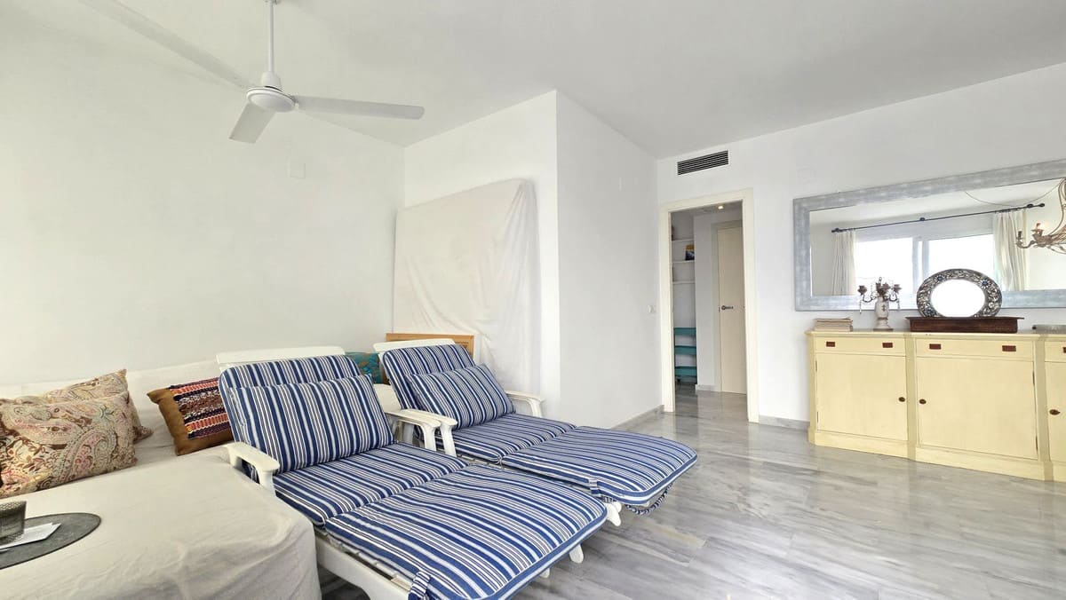 Welcome to this spacious 1-bedroom, 1-bathroom corner apartment with an extra-large south-facing terrace with sea views. With the potential to be converted into a 2-bedroom, 2-bathroom home. A neighbour has already completed a stunning renovation of an identical unit — photos available on request.