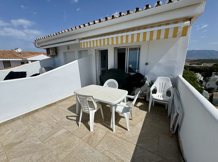 On the entrance level, you’ll find a cozy living room, a fully equipped kitchen, and a modern bathroom. Upstairs, there’s a spacious bedroom with direct access to a private terrace where you can enjoy breathtaking views of the sea and the Mijas coastline.