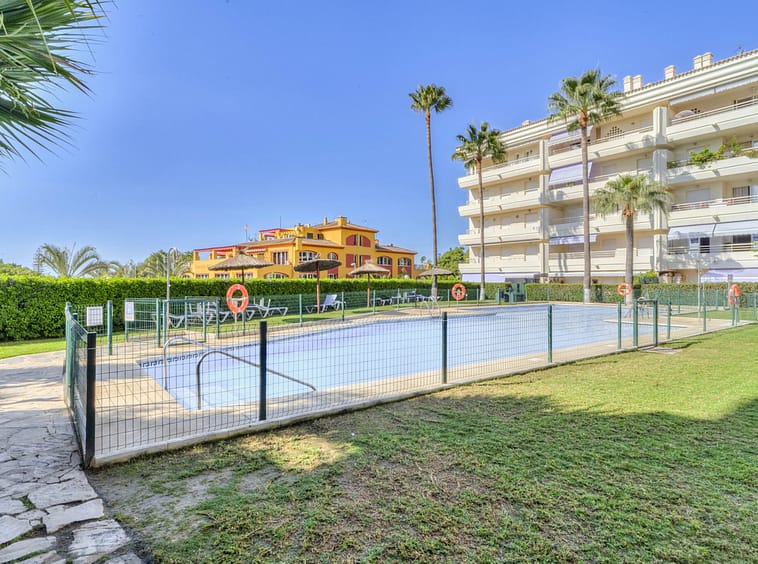 Residents benefit from the community’s exceptional amenities, including a beautiful communal pool set within lush gardens, 24-hour security service, a secure entrance, surveillance cameras, and a gated setting to ensure peace of mind. The complex is family-friendly, providing a children’s playground nearby, and is ideally located just 300 metres from the beach and a short walk from Guadalpin Suites and Marbella Club Hotel, supermarkets, restaurants, and the bus stop in front of the urbanisation.