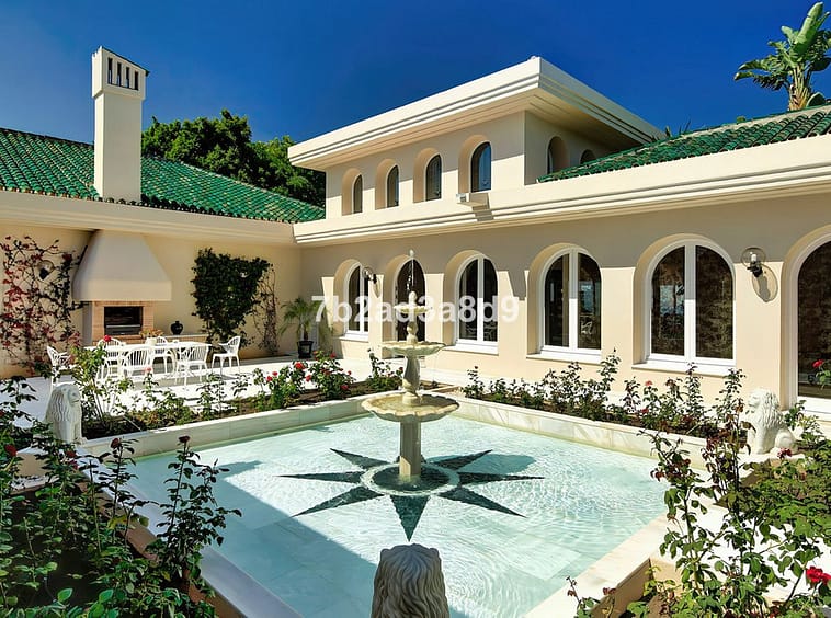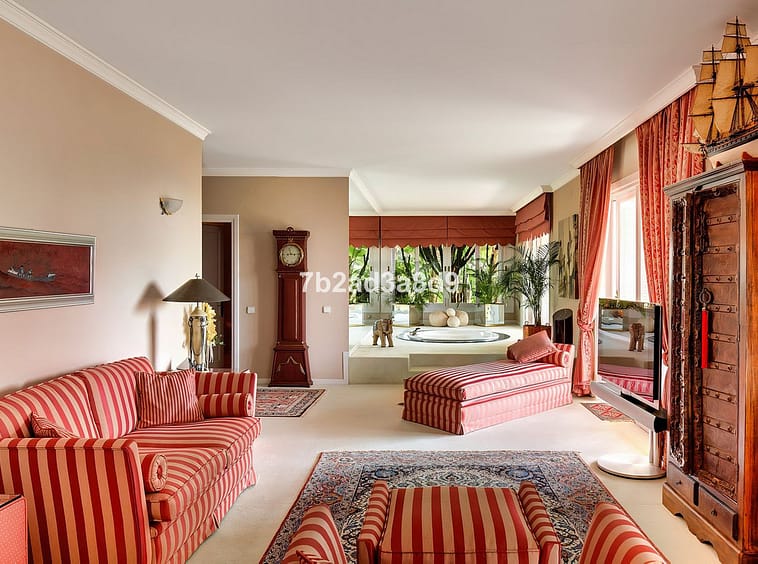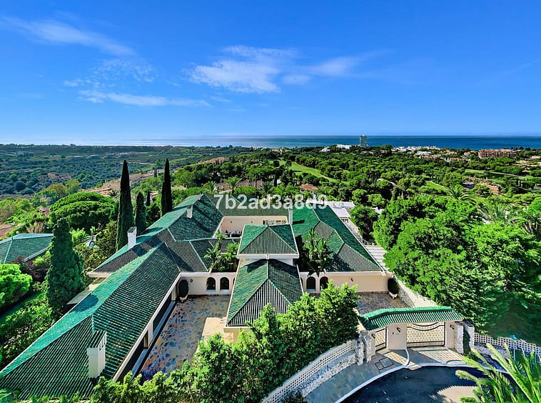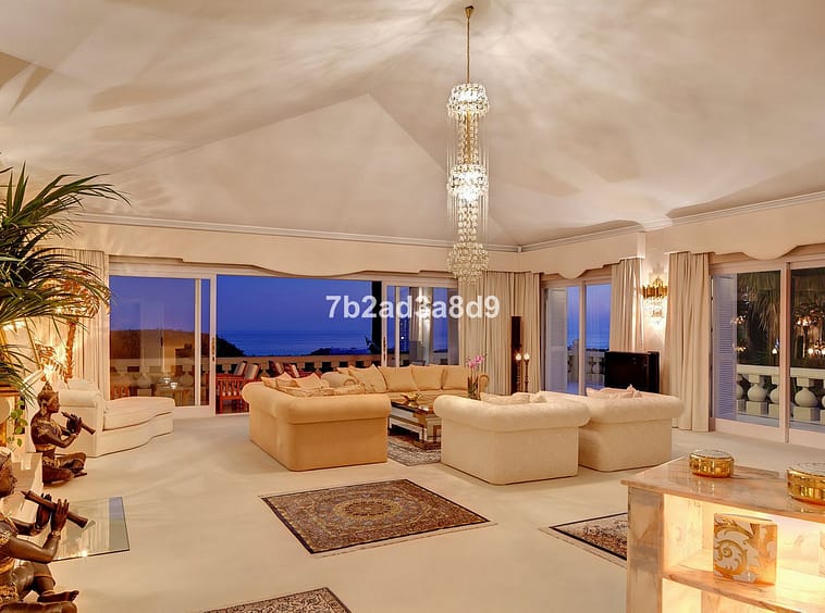 This extraordinary detached villa in Río Real, Marbella, offers a rare blend of classic Andalusian elegance and exceptional potential for modern transformation. Set atop a private hill, it enjoys uninterrupted views of the Mediterranean Sea, lush golf courses, and rolling green valleys—creating a serene yet captivating backdrop. With a vast plot of 5,775 m² and 2,600 m² of built space, the estate presents an outstanding lifestyle opportunity for discerning buyers seeking privacy, luxury, and architectural versatility.