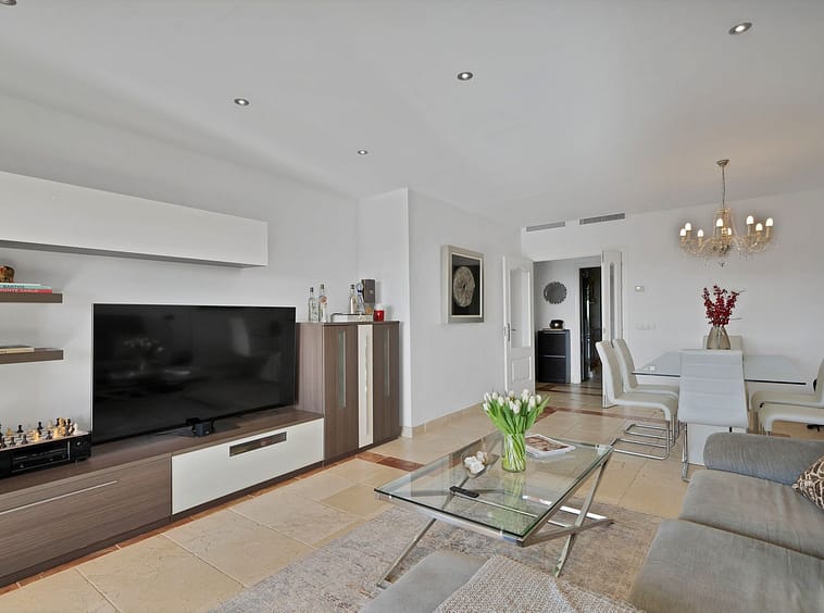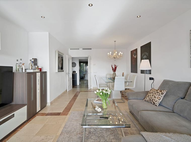 This 2-bedroom, 2-bathroom apartment is being offered for sale for the very first time since it was built. It is ideally positioned in one of the best blocks of the complex, ensuring total privacy and truly breathtaking panoramic views. From the terrace, you can enjoy sweeping vistas of the Mediterranean Sea, Africa, Gibraltar, Atalaya Golf, and the surrounding hills. With its west-facing orientation, the apartment benefits from abundant natural light throughout the afternoon and unforgettable sunsets.