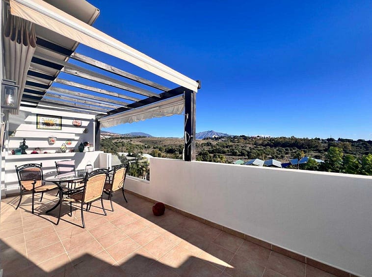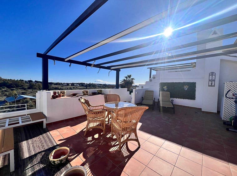 Imagine waking up to the soft light of the Mediterranean streaming through the large windows of your living room. The best place to enjoy breakfast is outside on one of the three spacious terraces, which cover a total of approx. 90 square metres, while you take in the sea view and the tranquillity of the well-maintained Las Jacarandas residential complex in Bel Air.
