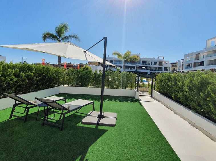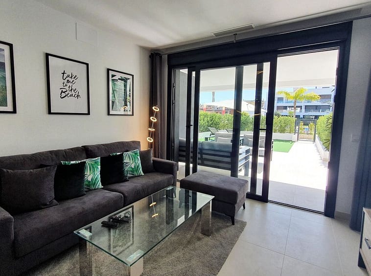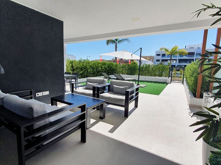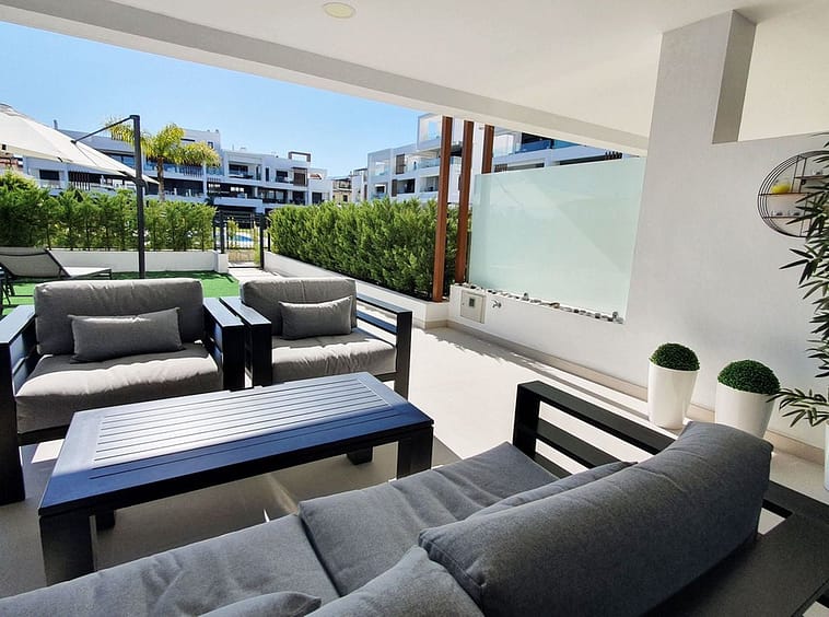 This stunning ground-floor apartment in Los Miradores del Sol Phase I perfectly combines contemporary luxury with Mediterranean indoor-outdoor living on Estepona’s exclusive New Golden Mile. Offering 92 m² of elegant interior space and an impressive 84 m² of private terraces and gardens, it’s ideally located just a short walk from the beach, shops, and restaurants.