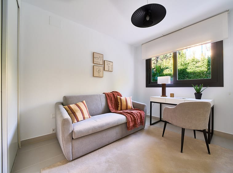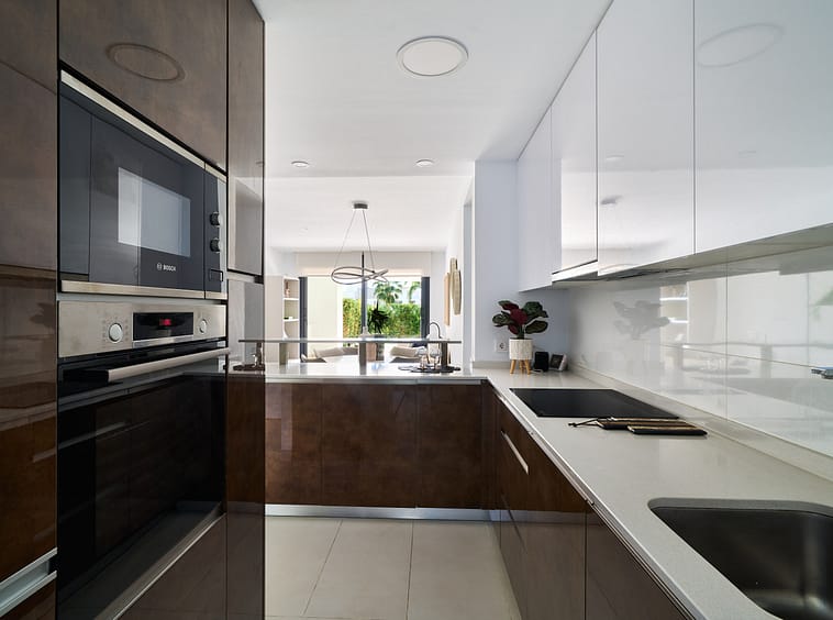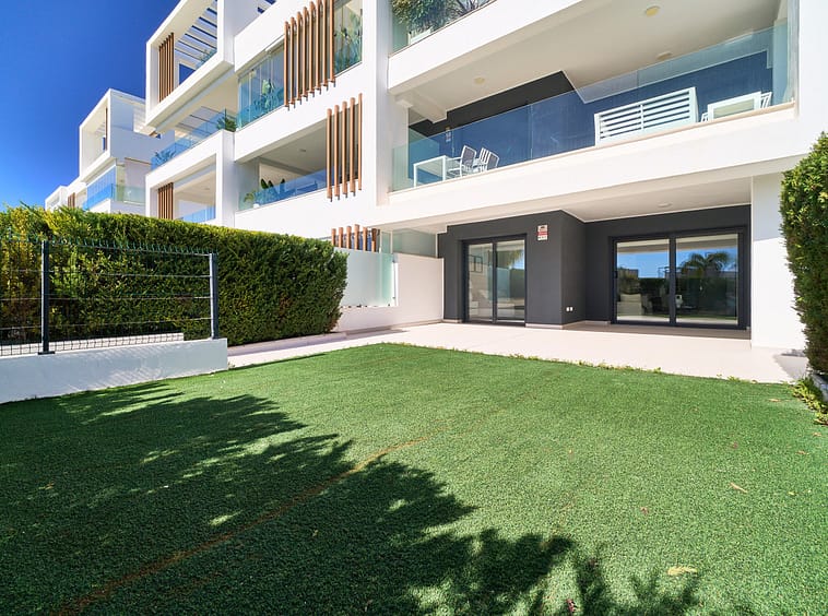 Strategically located in Marbellas's New Golden Mile, in walking distance to the beach, all amenities, services, and the town of Cancelada, within a 10 minute drive to both Puerto Banús and Estepona. Enjoying a modern design with comfort qualities such as underfloor heating throughout, efficient aerothermy heating, wide terraces and garden, with south orientation, two garage spaces and a storage room.