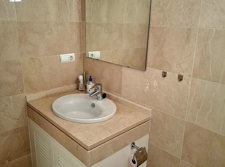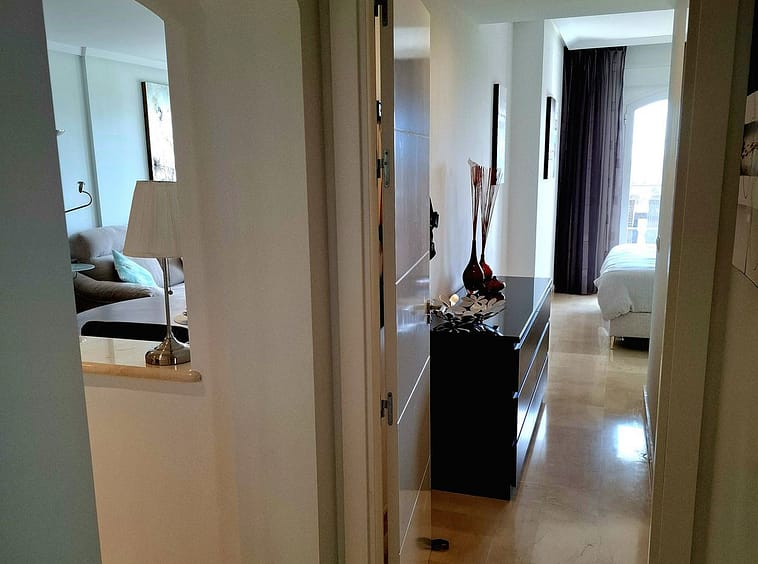 The apartment faces south, ensuring plenty of natural light and a warm, welcoming atmosphere throughout the day. It features two bedrooms and two bathrooms, including a master bedroom with en-suite bathroom and direct access to the spacious terrace. From here, you can enjoy beautiful views and even see a glimpse of the sea – the perfect spot to relax and soak up the Mediterranean sunshine.