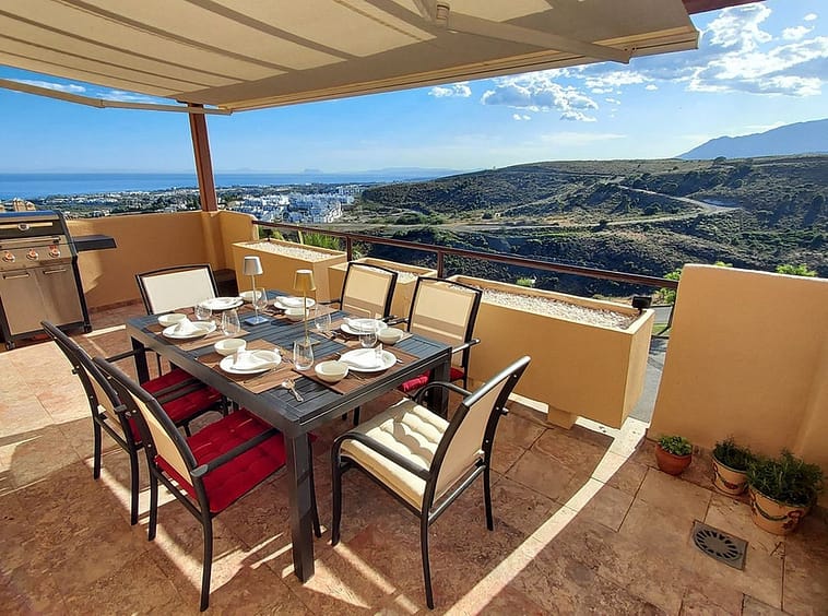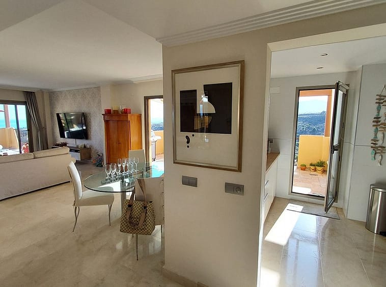 This exceptional 2-bedroom, 2-bathroom corner penthouse is located in the sought-after gated community of La Hacienda del Señorío de Cifuentes in Benahavís. Perfectly south-facing and elevated, it offers breathtaking panoramic views of the Mediterranean Sea, Gibraltar, the African coastline, and the surrounding mountains.