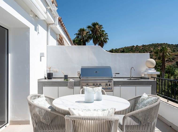 The interior includes two serene bedrooms and three stylish bathrooms, while the expansive terrace—facing south and east—provides breathtaking views of lush landscapes and the Sierra de las Nieves mountains. Ideal for relaxing or entertaining, the terrace seamlessly extends the living space outdoors.