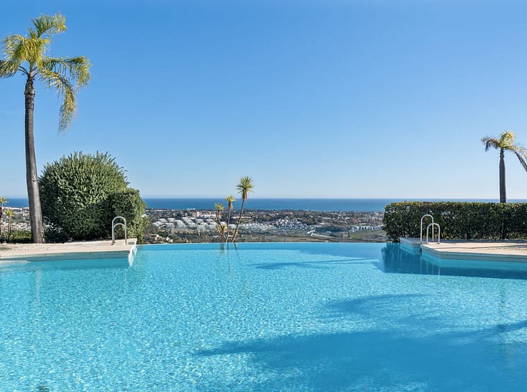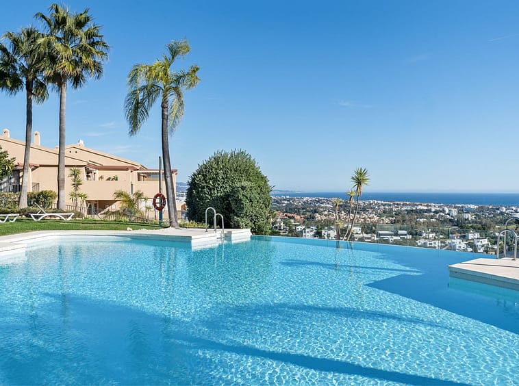 The community offers an exceptional lifestyle with four communal swimming pools, including a heated infinity pool boasting breathtaking panoramic views down to the coast. Residents can also enjoy elegant fountains, water features, and extensive landscaped gardens, perfect for peaceful walks and relaxation. The community has also begun the construction of a new private gym that will serve all of the residents.