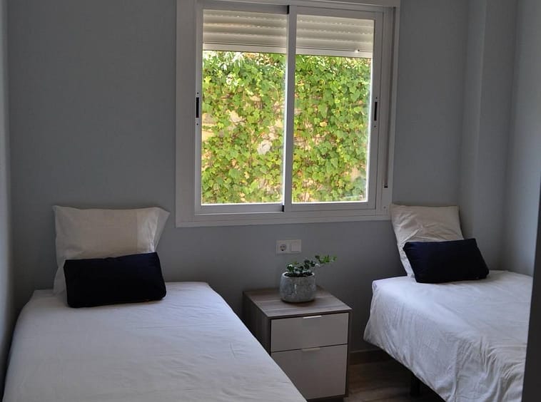 The apartment features two bedrooms, two bathrooms, a spacious living room, and a fully equipped kitchen. The master suite includes an en-suite bathroom and access to a 27m² covered terrace with panoramic views. It is very bright and airy. Furthermore, a numbered parking space and a storage room are included in the price, adding convenience to your daily life and a significant advantage.