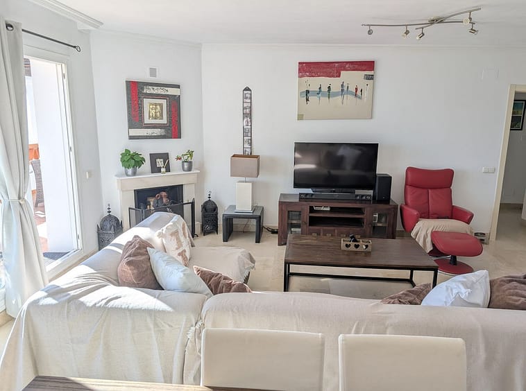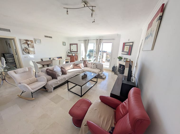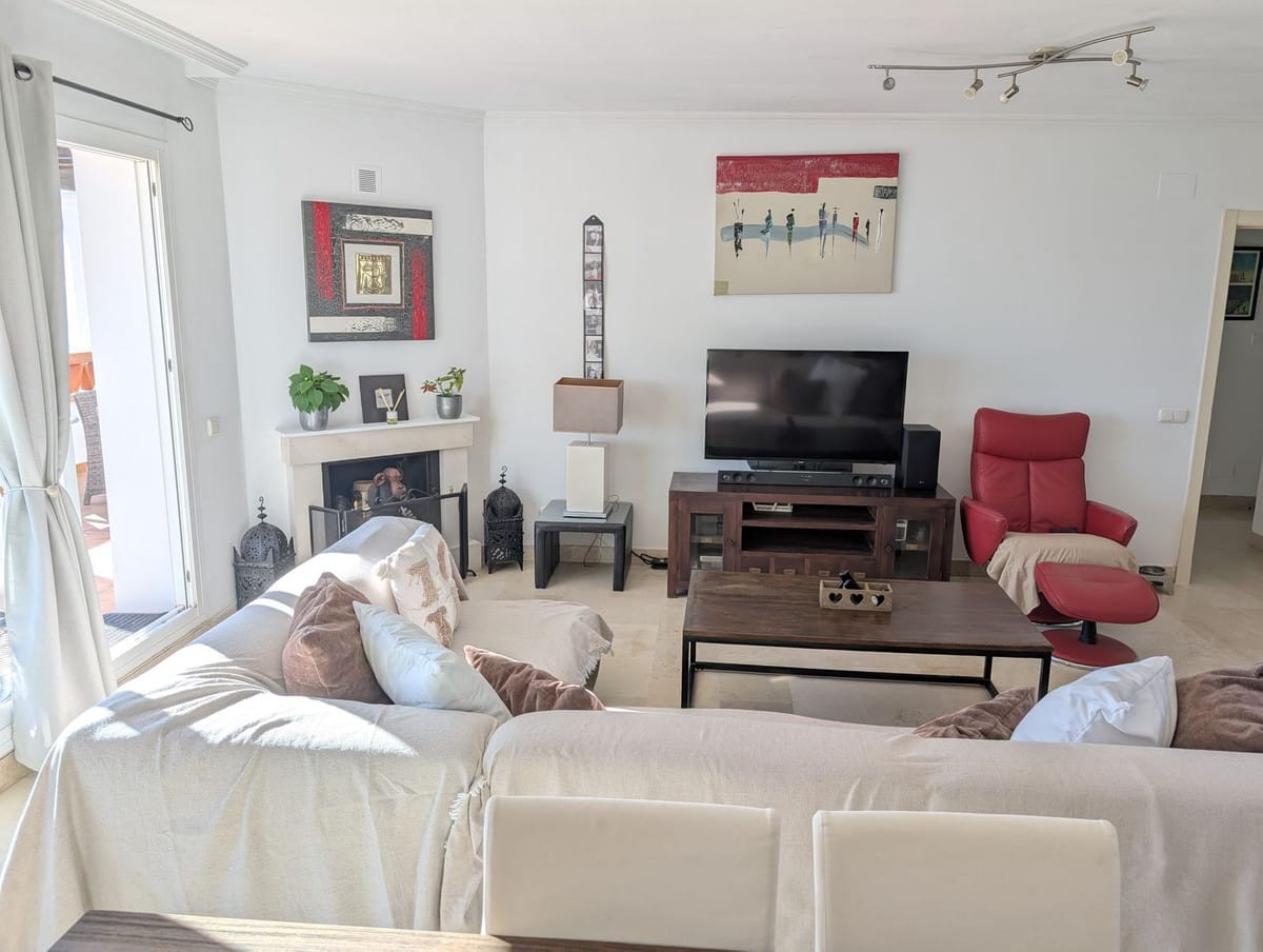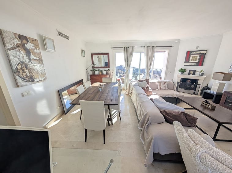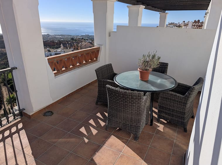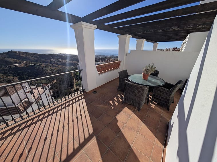 Impressive penthouse with sea views in Calahonda featuring a 123m² terrace, 104m²built, fireplace, A/C, parking space, and storage room. Easy access to the A7 motorway, supermarket, and restaurants just a few minutes away.
