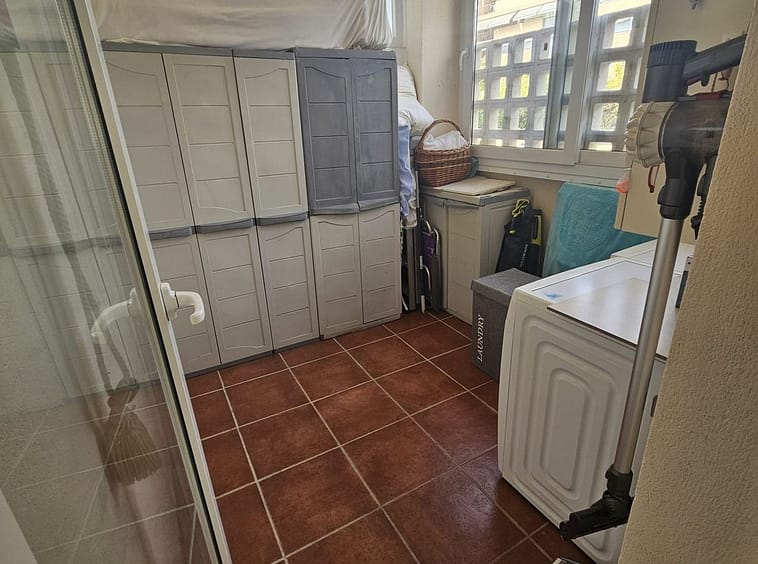 The property boasts a large, sunny south-facing terrace complete with glass curtains that can be fully opened to enjoy the fresh air and sea views. Inside, the generous kitchen and lounge/dining area provide plenty of room for comfortable living, complemented by a spacious utility room.