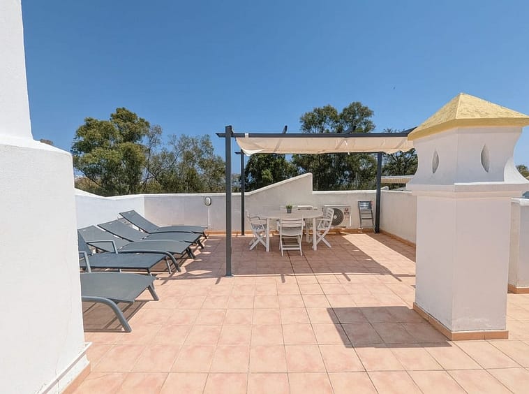 Accessed via a small flight of stairs, the property opens into a bright, spacious layout with a fully fitted kitchen leading onto a generous dining and living area. This flows seamlessly onto a large private terrace, perfect for entertaining or relaxing in the sun. A spiral staircase leads to a standout feature: a huge rooftop solarium that enjoys sunshine all day and breathtaking panoramic views.