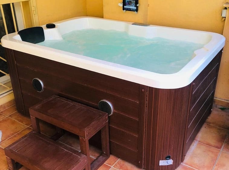 Air conditioning. Nice covered terrace, with nice furniture, barbecue and jacuzzi.
