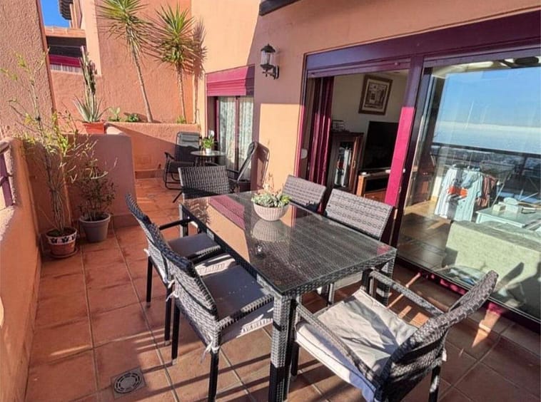 The property has two bedrooms, the master with an en-suite bathroom, a bright living-dining room with plenty of natural light, a fully equipped kitchen with a separate storage room, as well as a terrace and balcony from which you can enjoy sweeping sea views. It also includes a parking space and hot/cold air conditioning system for greater comfort throughout the year.