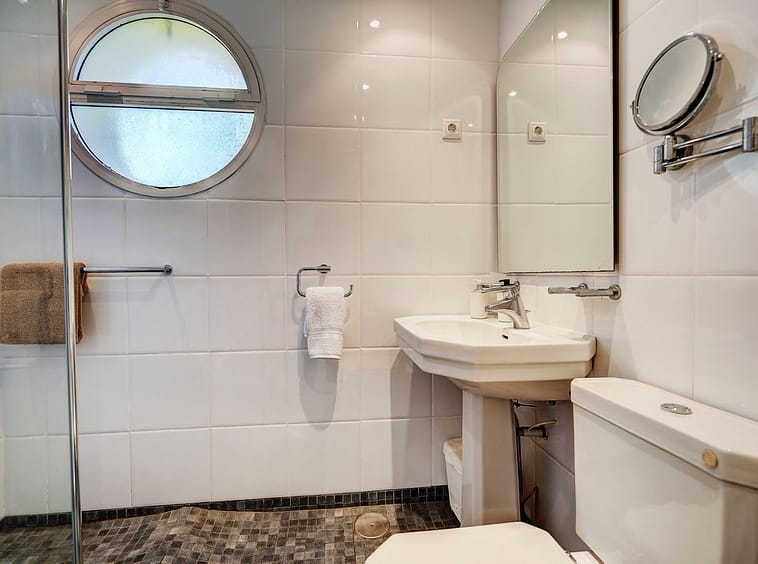 The entrance level features a welcoming hallway, a large lounge with multiple aspect windows and excellent natural light, plus direct access to a 20m² south-west facing terrace overlooking the pool. The kitchen is fully equipped and features a serving hatch through to the lounge. This level also includes a full shower room. On the lower floor you will find two generous double bedrooms and a full shower room, with the master bedroom benefiting from its own private terrace.