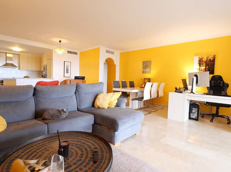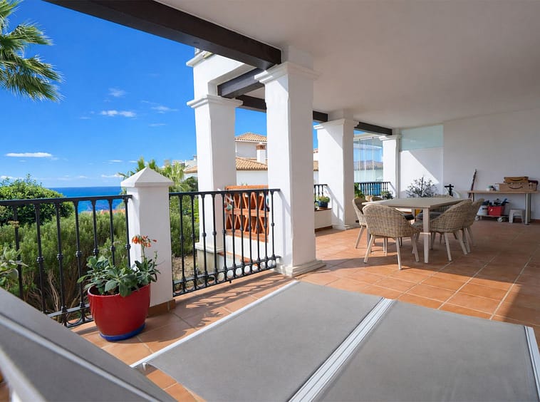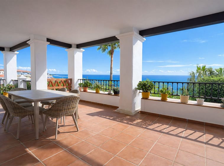 This modern open plan apartment is located in a secure gated complex in the upper part of Calahonda enjoying amazing views to the sea. What we really like about this property is the amazing panoramic view, the extra wide spacious living area and also large terrace. This gated complex has four pools to choose from. We strongly recommend a visit.