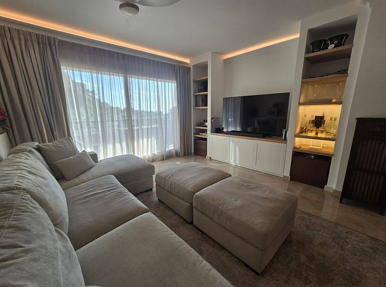 Wonderfully appointed 2-bedroom, 2-bathroom apartment in the sought‑after area of Calahonda, Mijas. Fully reformed throughout and offering beautiful sea views, this property boasts a large south‑facing terrace fitted with glass curtains, allowing year‑round enjoyment of the outdoor space.