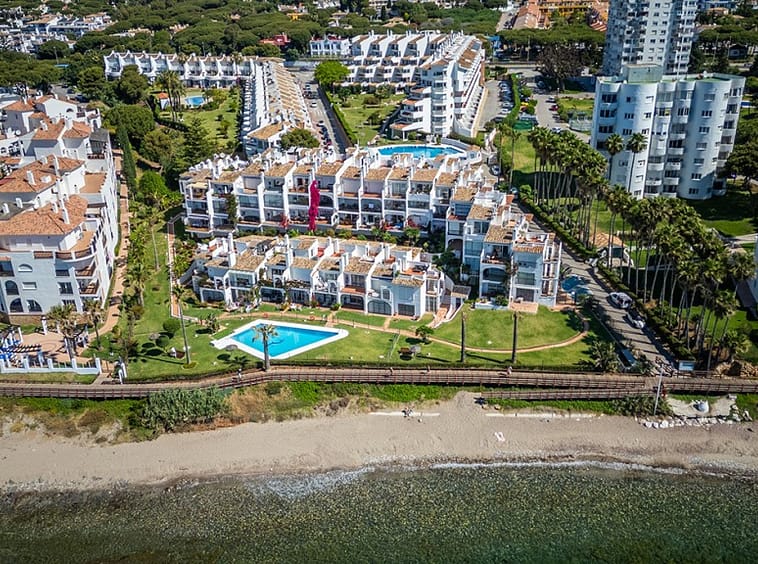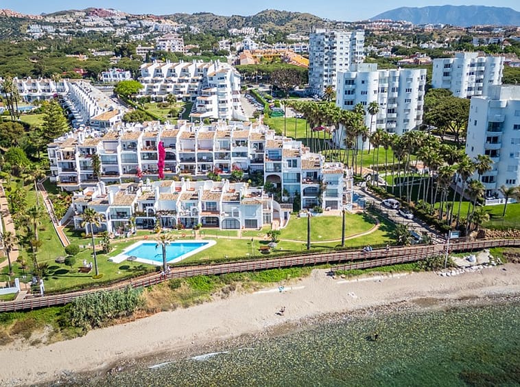 Penthouse in Calahonda in second line beach with amazing sea views and offering on two levels two bedrooms, two bathrooms, a kitchen, bright living room with sunny terrace and a roof terrace with views to the Mediterranean Sea and with sun all day. Sold furnished and equipped with AC hot and cold, marble floors and including one underground parking space. Gated complex with beautiful garden, pool and access to the wooden board walk and to the beach.