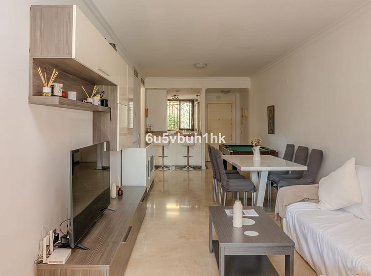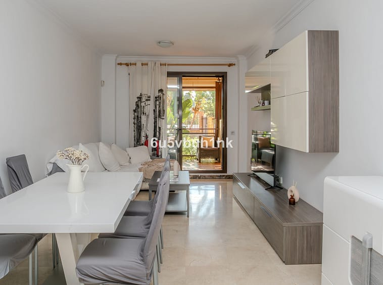 We present this superb ground-floor apartment located in the renowned Calanova Sea Golf development (Mijas Costa). Built in 2006 and in excellent condition, the property offers 105 m² of constructed area distributed across a spacious living–dining room, a fully equipped independent kitchen, 2 double bedrooms with fitted wardrobes, and 2 full bathrooms (one en suite).