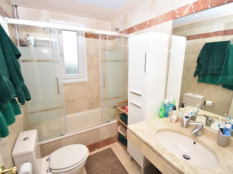 Located within a secure, gated urbanisation with 24-hour security and reception, residents benefit from beautifully maintained communal gardens, a large swimming pool, and a separate children’s pool. Additional features include lift access, underground private parking, a storage room, pre-installed air conditioning, fibre optic internet, satellite TV, electric blinds, and entry phone system.