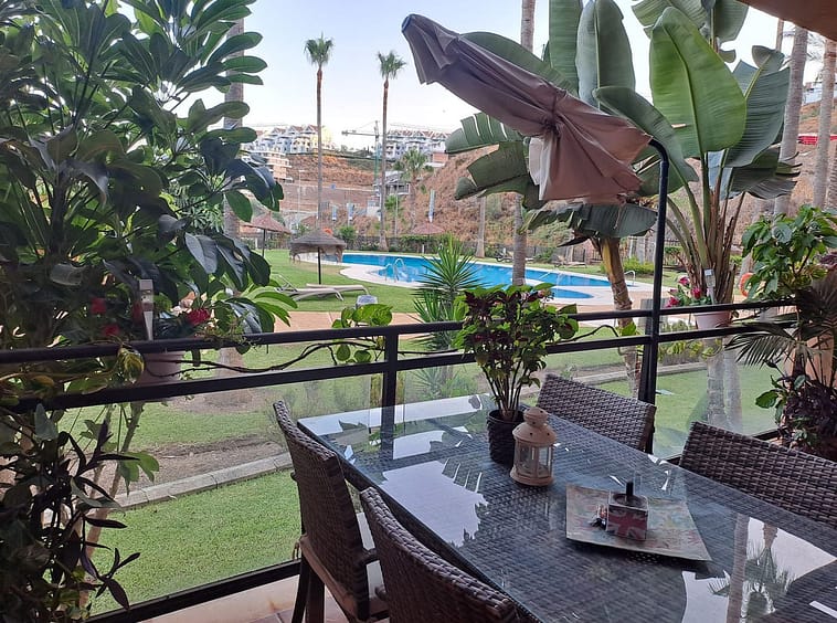 Charming 2-Bedroom, 2-Bathroom Ground Floor Flat with Garden & Pool Views