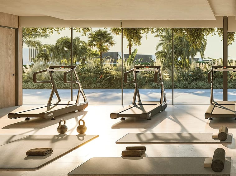 Residents enjoy boutique-style amenities, including a wellness area with sauna and steam bath, coworking lounge, concierge service, and a beach-style pool surrounded by meticulously designed Mediterranean gardens.