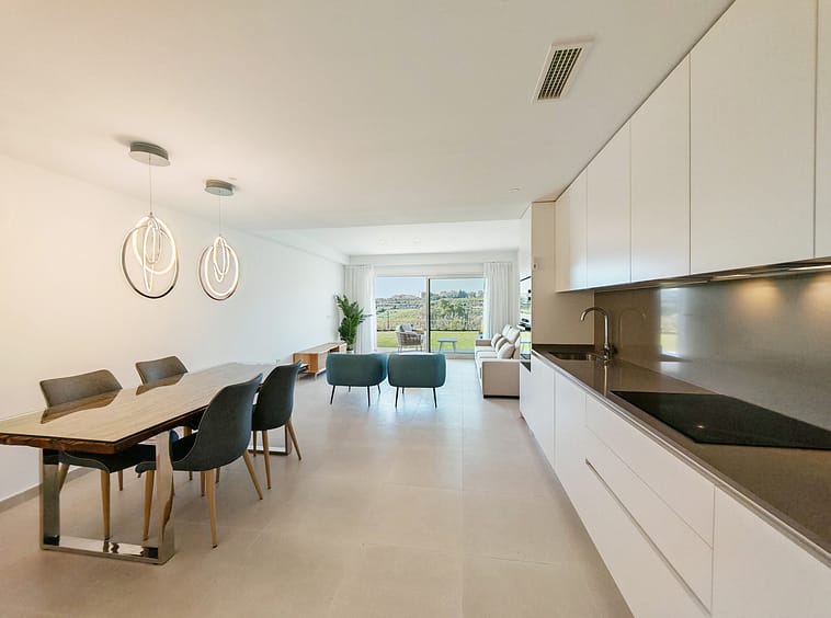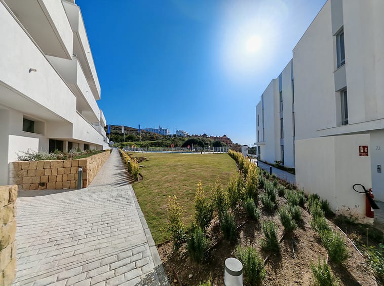 Ground Floor Apartment for sale in Cancelada, Estepona with 2 bedrooms, 2 bathrooms and 1 on suite bathroom, with communal swimming pool, private garage (1 parking spaces) and private garden. Regarding property dimensions, it has 90.6 m² built, 129.4 m² plot, 75.1 m² interior and 25.25 m² terrace. Has the following facilities amenities near, air conditioning, fully furnished, fully fitted kitchen, gym, double glazing, video entrance, brand new, private terrace, water tank, country view, indoor pool, internet – wi-fi, fitted wardrobes, gated community, garden view, panoramic view, close to children playground, close to sea / beach, close to golf, open plan kitchen, spa, excellent condition, close to schools and close to restaurants.