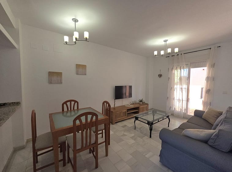 The living room is spacious, filled with natural light, and has direct access to a terrace perfect for enjoying breakfast in the sun, relaxing with a book in the afternoon, or savoring summer dinners. The terrace is a key feature of the property, allowing you to enjoy the charm of the Costa del Sol climate practically year-round.