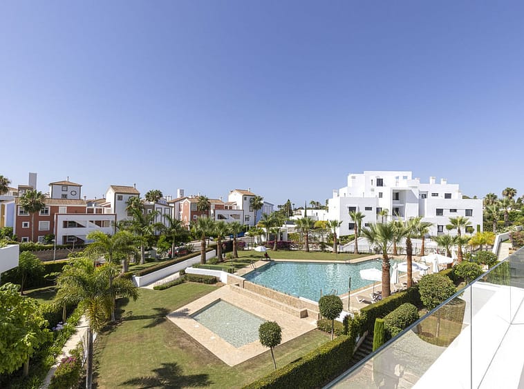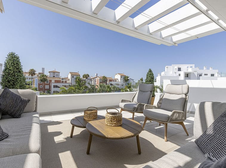 This spectacular 2-bedroom, 2-bathroom penthouse is located in the exclusive development Cortijo del Golf, in the El Paraíso area of Estepona. Situated in the heart of the New Golden Mile, this enclave combines tranquility, security, and proximity to key points of interest on the Costa del Sol, such as Puerto Banús and Marbella, just a few minutes away by car.