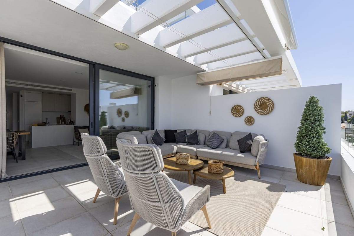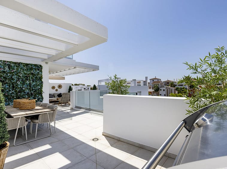 One of the main attractions of this penthouse is its impressive 96 m² terrace, ideal for enjoying the Mediterranean climate all year round. The terrace features a covered chill-out area, space for outdoor dining, with barbecue zone and an open area perfect for sunbathing, relaxing, or even setting up a small garden. The open views and privacy it offers make this space a true standout feature.