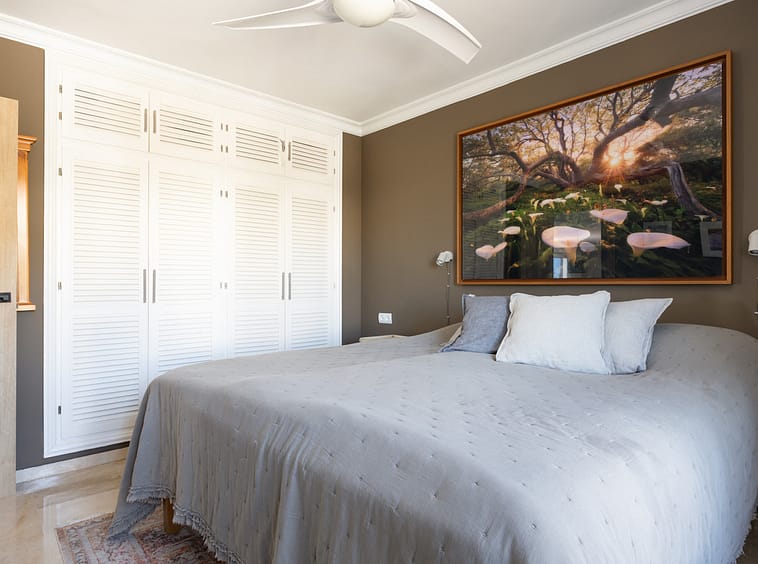 The south-facing terrace boasts panoramic views of the Mediterranean Sea, the pool, gardens, and La Concha mountain — perfect for relaxing or entertaining. The north-facing terrace offers a shaded retreat with a wooden pergola while still benefiting from open mountain views.