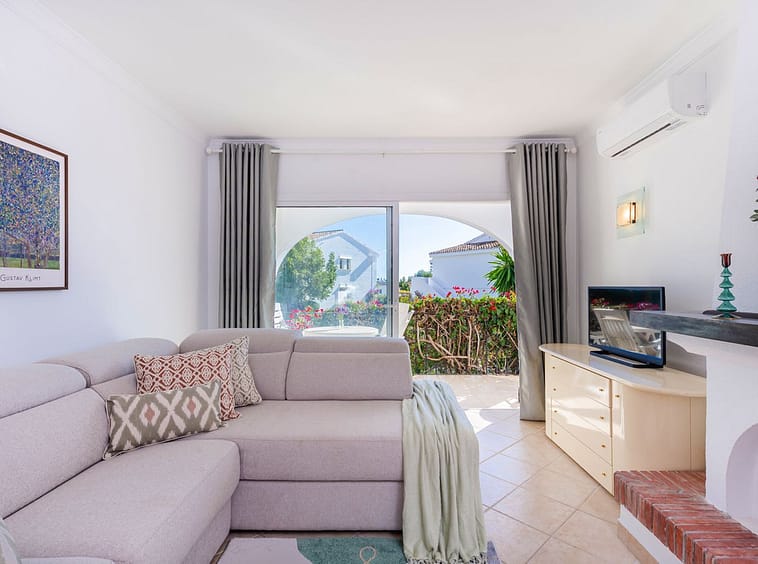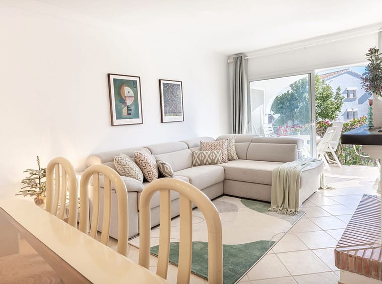 The lounge offers views to the wonderful Andalucian gardens and benefits from the relaxing sounds of a cascading golf waterfall feature expertly designed within the tropical palm garden swimming pool. A convenient exterior dining and relaxation terrace is accessed from wide picture windows of the lounge and offers garden, swimming pool and a glimpse of the Mediterranean Sea in view.