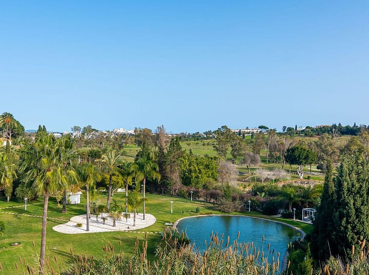 One Level Penthouse offering Andalucian style garden & swimming pool views with a glimpse of the Sea, encapsulated by hills and tropical palms and enviably positioned within a prestigious community at the foot of the El Parasio Golf Club, an area of outstanding natural beauty and tranquillity, consistently chosen by industry professionals as a top recommended golf and residential choice designed within outstanding tropical gardens and offers direct access on foot from the community onto the famous El Paraiso Alto 18 hole golf course green.