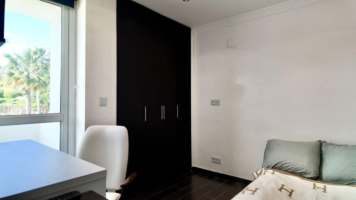The community includes a swimming pool, and the property is located just 400 meters from the beach, 100 meters from the A7, and only 10 minutes from Puerto Banús.
