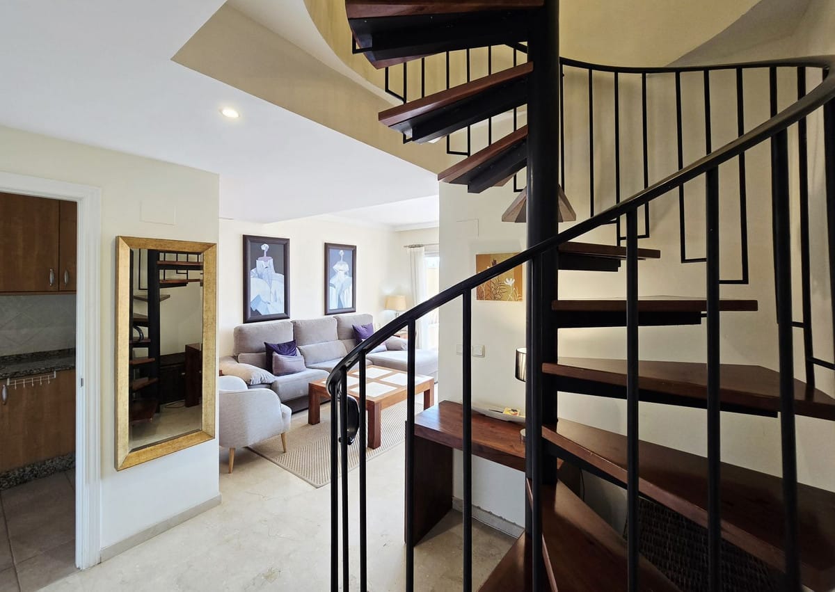This bright two-storey penthouse is in good condition and comprises a large living and dining room with access to a spacious terrace. The kitchen is located at the rear, as is the second bedroom. A complete family bathroom is also on this level.