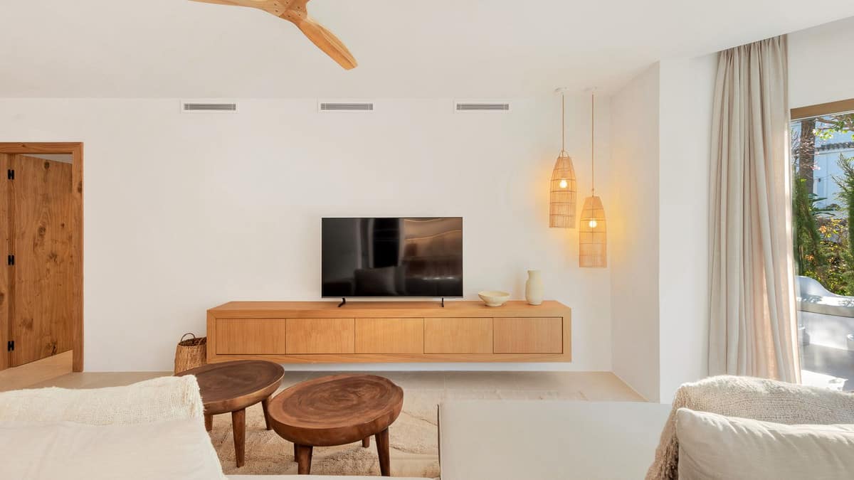 Located within the exclusive beachfront residential enclave of Golden Beach in Elviria, this fully refurbished ground-floor apartment offers the true lifestyle of modern Mediterranean living. Facing west, it enjoys beautiful sunsets, creating a warm and welcoming atmosphere both inside and out on the terrace.